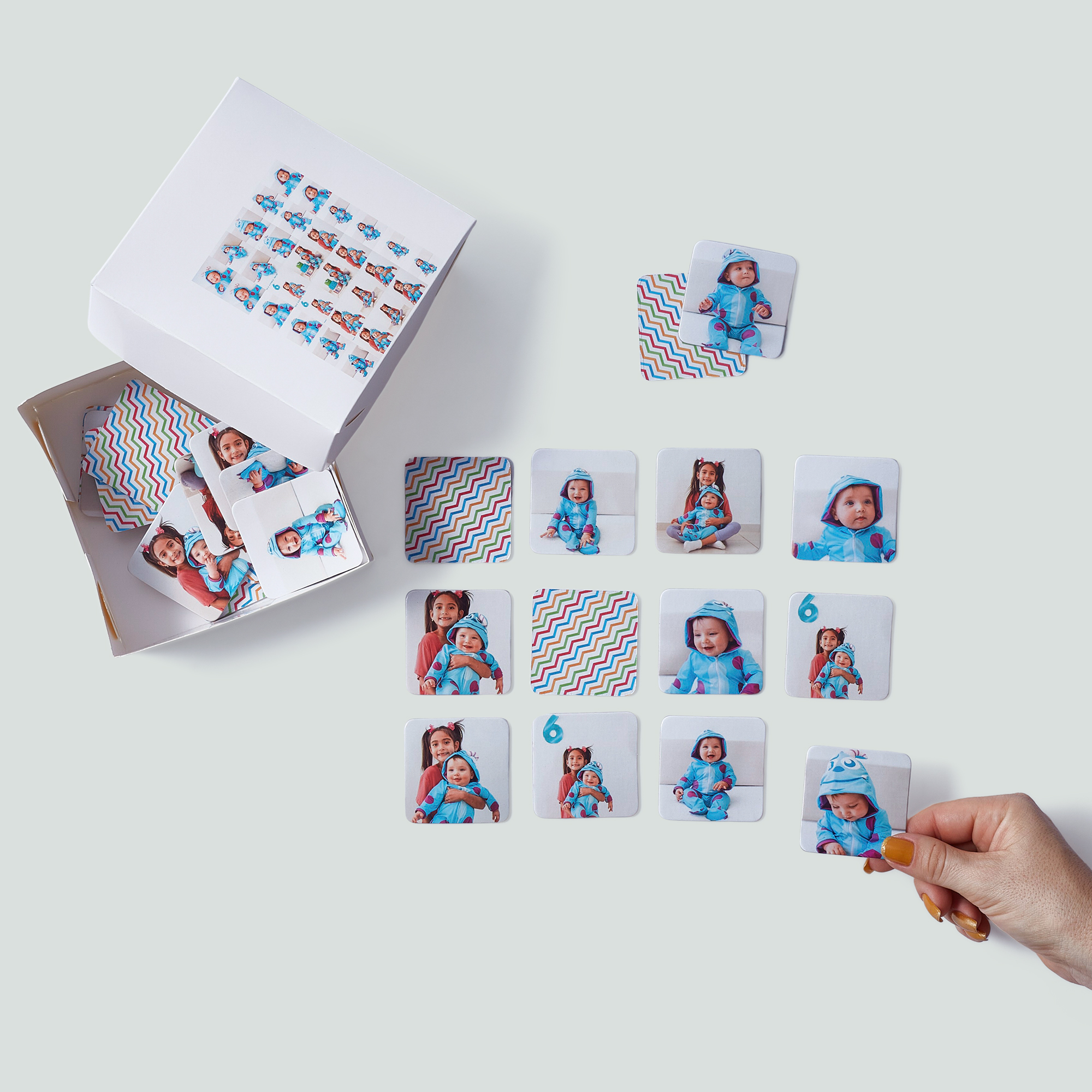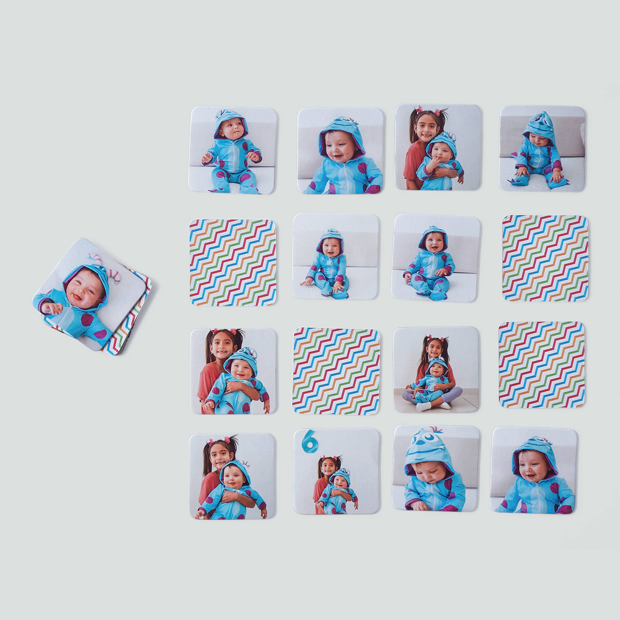 - Peças no tamanho de 5x5cm com cantos arredondados